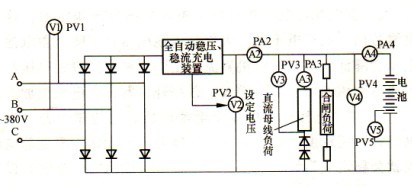 (1)充電裝置與直流母線和蓄電池并聯(lián)運行的連接示意圖見圖3-2。